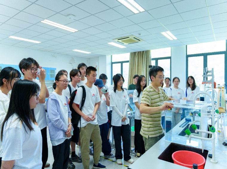 傍晚时分,营员们来到院史馆和流体力学实验室进行参观学习。同学们在傅豪老师带领下,观看并动手操作了经典的流体实验,对流体的性质有了更加深刻的认识。