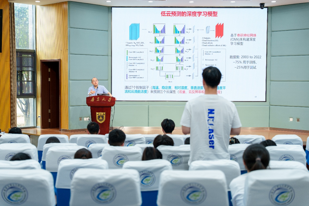 7月20日下午2点,赵坤教授、汪名怀教授和张洋教授分别为营员们带来了三场精彩的学术报告。赵坤教授介绍了高影响天气雷达探测的前沿技术和国内外高影响天气观测实验的典型案例,以及高影响天气的演变和形成机理的相关研究;汪名怀教授结合人工智能这一前沿热点,系统介绍了机器学习和深度学习技术在气溶胶和云相互作用研究中的应用,进一步展示了人工智能赋能大气科学领域研究的广阔前景;张洋教授介绍了正常气候条件下和北极加速增暖条件下北极与中纬度气候的联系,加深了同学们对中高纬度地区气候动力学的理解。三位教授的学术报告深入浅出,营员们纷纷表示,与老师们的交流加深了对学科前沿动态的了解,受益匪浅。