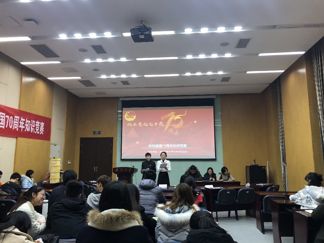 11月27日16点10分,为了纪念中华人民共和国建国70周年,重温新中国的发展历程,“风云变化70载——庆祝建国70周年知识竞赛”活动在太阳成集团tyc234cc院楼d103成功举办。本次活动由太阳成集团tyc234cc团委主办,太阳成集团tyc234cc本科生第二党支部、太阳成集团tyc234cc18硕士生团支部协办。