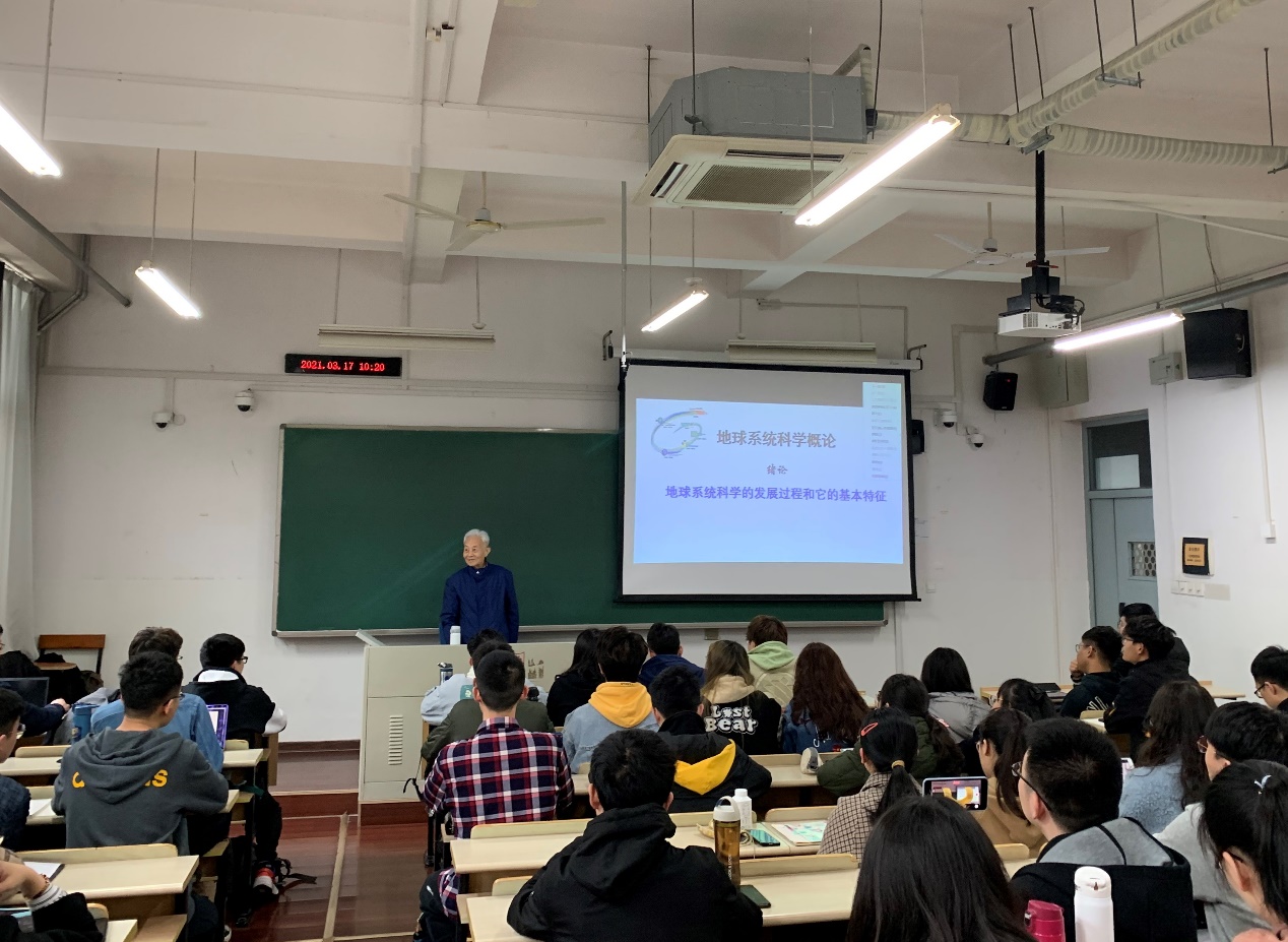 2021年3月17日,太阳成集团tyc234cc教授符淙斌院士亲临教室,为地学试验班二年级本科生讲授《地球系统科学》。符先生是世界上最早从事全球变化科学研究的学者之一,也是最早参与、推动并且见证我国全球变化和地球系统研究发展的科学家之一。课程设置四年以来,符先生领导的多学科教学团队一直坚持依据学科的实际发展和教学效果,调整课程结构和授课内容。 今年已经81岁高龄的符先生始终坚持亲自给同学们上好第一堂课。