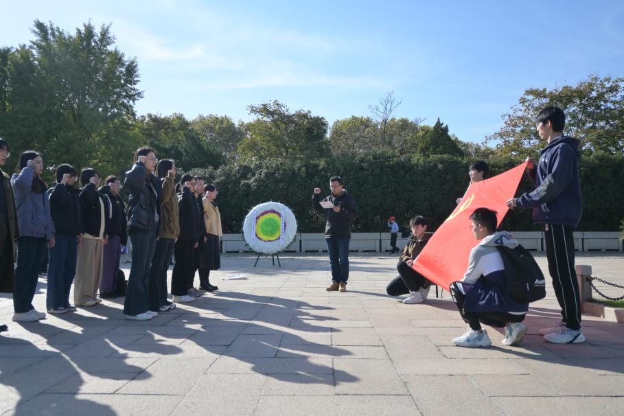 青松挺立、翠柏环抱,雨花台烈士陵园静穆庄严。烈士纪念碑巍峨高耸,“宁死不屈”的革命烈士塑像昂首屹立,寓意革命精神薪火相传的“长明灯”熊熊燃烧、生生不息。在庄严肃穆的雨花革命烈士纪念碑前,全体党员、预备党员和入党积极分子向烈士们鞠躬默哀,并环绕纪念碑一周,为烈士们献上鲜花,追忆革命烈士的不朽功勋。在王欢书记的带领下,全体党员师生面对纪念碑和党旗默哀并高举右拳庄严宣誓,重温了入党誓词,积极分子们在其后聆听前辈初心,牢记吾辈使命,深切缅怀革命先烈。