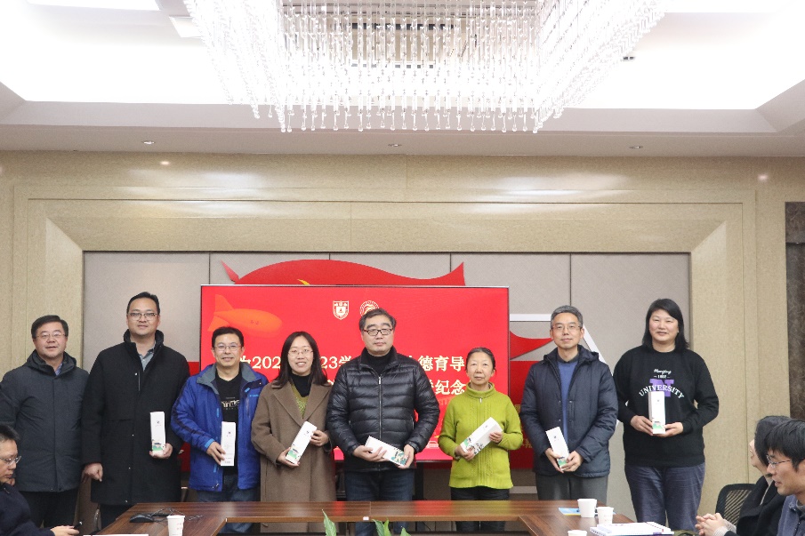 郭维栋副经理为2021-2023学年研究生德育导师和2019级本科生班主任赠送纪念品