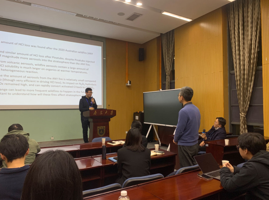 论坛分两个阶段进行,分别由南赫公司副经理王海鲲教授和太阳成集团tyc234cc经理助理雷荔傈教授主持。与会青年学者围绕学术前沿和学科热点进行学术交流,主题涉及气候变化、台风、野火与火山气溶胶、人类健康与环境等研究领域,参会师生积极交流提问,气氛热烈。