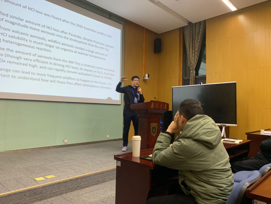 第一阶段8位青年学者分别就“野火和火山气溶胶对平流层氯化学过程影响”“生物源气溶胶”“历史上土地利用变化对气温的影响”“冬季北极-大西洋的热力学变化”“以健康为导向的大气污染控制”“多尺度耦合的WRF-LES-Chem高分辨率城市空气质量模拟研究”“气象资料对对流尺度数值天气预报的影响评估”“大气污染物的多相迁移转化”等作报告;下半场7位青年学者则围绕“地球的能量平衡与气候中的辐射反馈”“不断变化的美国太平洋和大西洋驱动力”“为什么美国是全球龙卷风最多的国家”“大气活性化学成分在气-地之间的物质交换研究”“春季热带东太平洋海气相互作用及其影响”“复杂地形上的湍流建模”和“空气污染对健康的不良影响”等展开。