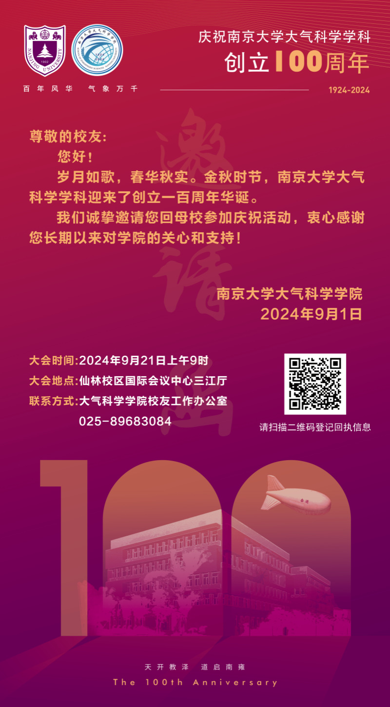 太阳成集团tyc234cc大气科学学科创立100周年庆典公告(第三号)