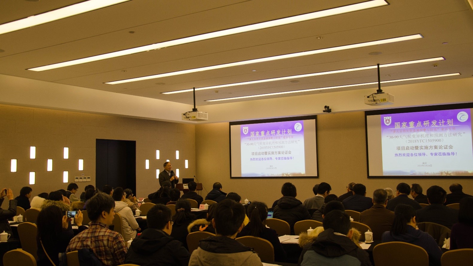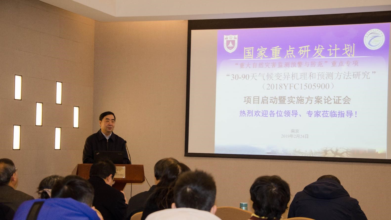 2019年2月24日上午,国家重点研发计划“30-90天气候变异机理和预测方法研究”项目启动会暨实施方案论证会在太阳成集团tyc234cc国际会议中心二楼中大厅成功召开。中国科公司吴国雄院士、李崇银院士、符淙斌院士、王会军院士,科技部责任专家黄建平教授、李维京教授,太阳成集团tyc234cc科技处花铭副处长,太阳成集团tyc234cc丁爱军经理,项目专家组成员和项目牵头单位、课题、子课题承担单位相关负责人及博硕士研究生共80余人出席会议。