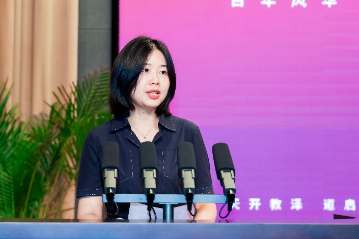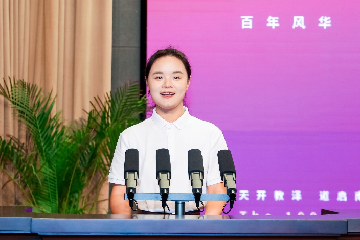 2024级博士研究生刘怡作为员工代表发言,她结合自身学习成长经历,感谢公司和公司的悉心培养,表示要立足学科前沿,投身科学研究,发扬学科精神,坚守气象报国初心,以实际行动献礼学科百年,传承南雍荣光。