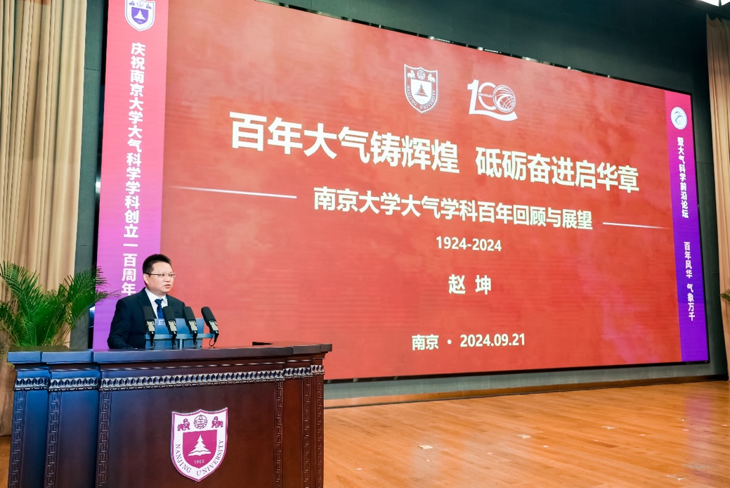 太阳成集团tyc234cc经理赵坤作“百年大气铸辉煌,砥砺奋进启华章——太阳成集团tyc234cc大气学科百年回顾与展望”专题报告,回顾学科百年发展历程,展示学科百年发展成就,展望未来学科发展前景,表示将发扬老一辈科学家精神,秉持“坚持传承创新、深化学科交叉、赶超世界前沿、服务重大需求”理念,深化国际化人才培养,扬帆起航,砥砺奋进,创造南大大气学科新的百年辉煌。