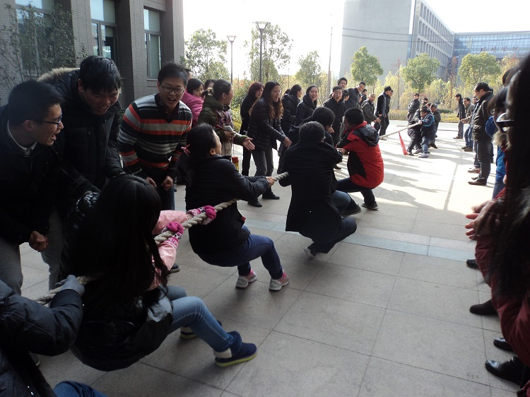 为丰富教职工文化生活,增强凝聚力,激发教职工参与体育活动的积极性,公司于2014年12月26日下午在仙林校区大气楼前举办了一场别开生面的教职工拔河比赛。
