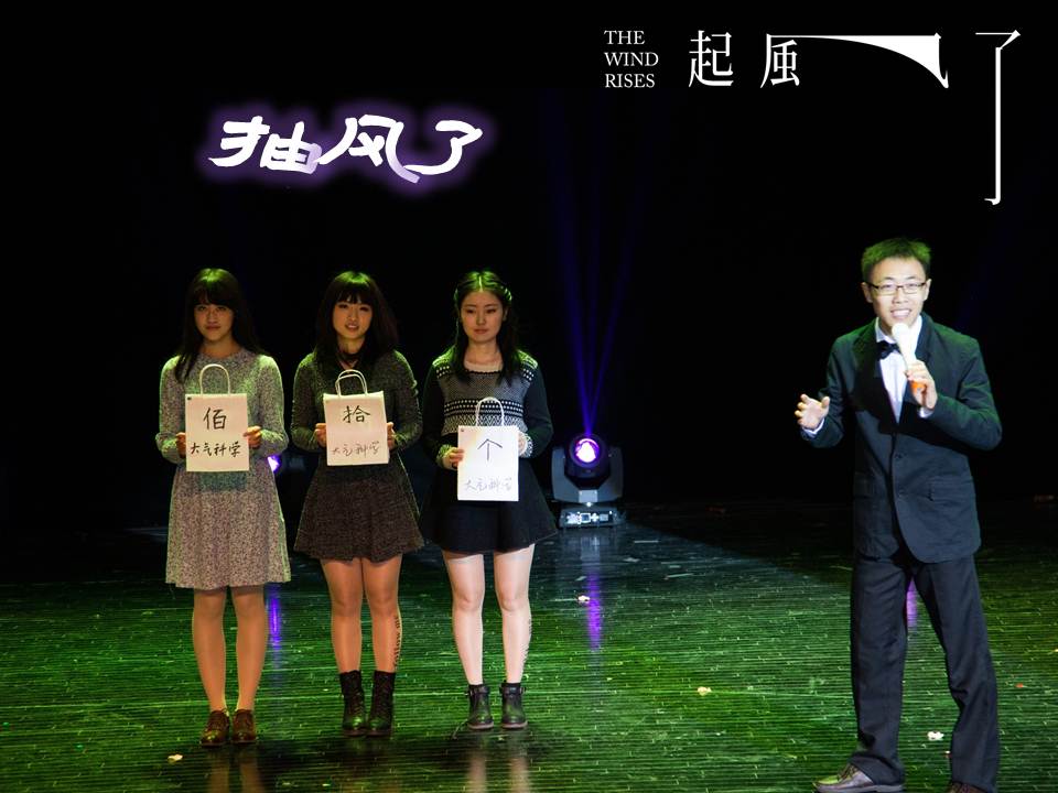 有别于往年,2014太阳成集团tyc234cc“起风了”迎新晚会之“新”,在于三处:第一,自然是迎接2014级大气新生;第二,则是盘点旧岁、迎接新年;第三,是在这太阳成集团tyc234cc大气科学学科创立90周年及建系70周年庆典之后,迎接一个崭新的历史篇章——真可谓是万象更新。