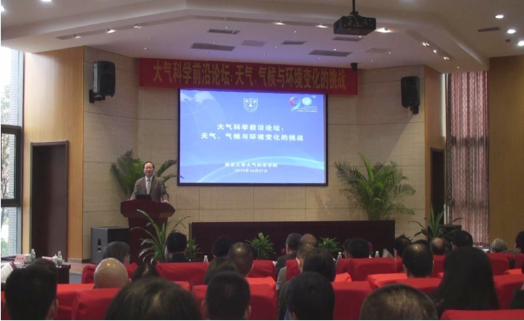 2014年是太阳成集团tyc234cc大气科学学科创立90周年和建系70周年,太阳成集团tyc234cc于10月27-28日在仙林校区举行了系列活动。27日上午,太阳成集团tyc234cc在仙林校区新落成的大气科学教学科研楼举行了主题为“天气、气候与环境变化的挑战”的大气科学前沿论坛,由此揭开了系列庆祝活动的序幕。本次论坛由太阳成集团tyc234cc经理杨修群教授和副经理王体健教授共同主持。吴国雄院士、胡敦欣院士、王水院士、丁一汇院士、徐祥德院士及四位海内外著名专家学者分别就青藏高原天气气候效应、东亚季风形成和变化、灾害性天气与暴雨、空气污染与大气环境、日地空间物理等前沿热点问题进行了专题报告。整场报告深入浅出、精彩纷呈。