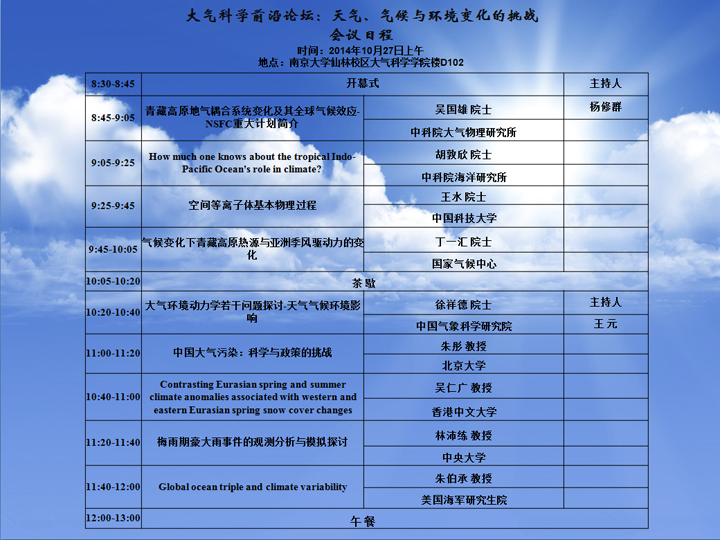 大气科学前沿论坛:天气、气候与环境变化的挑战会议日程