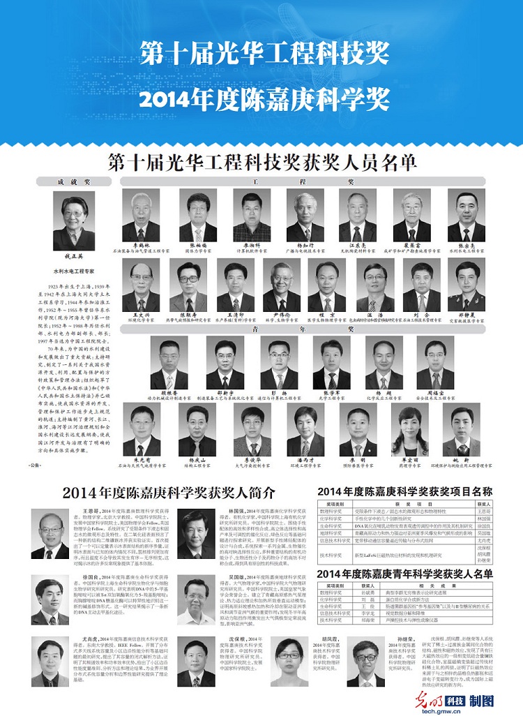 光华工程科技奖面向全国工程科学技术界,奖励在工程科技及管理领域取得突出成绩和重要贡献的工程师和科学家,激励他们从事工程科技研究、发展、应用的积极性和创造性,促进工作顺利开展,并取得成果。该奖自1996年首届颁发,包括成就奖、工程奖和青年奖3个奖项,每两年颁奖一次,迄今共奖励了涉及机械、运载、信息、电子等工程领域的173位院士和专家。该奖被誉为中国社会力量设立的中国工程科技界最高奖项。
