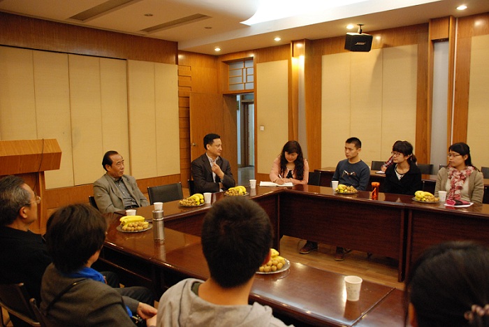 潘书记首先做了发言,感谢各位师生的积极参与,并充分肯定了这种师生交流活动的重要意义。他希望这次座谈会以一种自由漫谈的形式展开,增强退休老师与在校员工之间的互动,一方面促进员工成长,帮助员工树立正确的世界观、人生观、价值观,提高党性修养,另一方面能够丰富退休教师的生活,为他们带来欢乐。