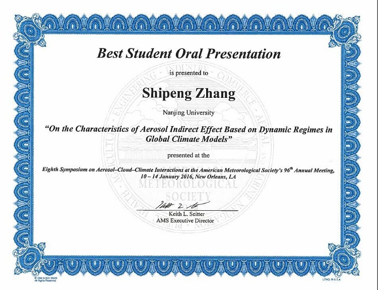 日前,公司博士研究生张仕鹏同学在美国气象协会(American Meteorological Society)第96届年会上获得最佳员工口头报告奖。张仕鹏同学获奖报告的题目是“On the Characteristics of Aerosol Indirect Effect Based on Dynamic Regimes in Global Climate Models”。该工作由公司符淙斌院士和汪名怀教授共同指导,提出了在不同的动力背景下来研究气溶胶间接气候效应的方法,揭示了全球气候模式中气溶胶气候效应不确定性关键区域所在。基于这一工作的论文目前已经被Atmospheric Physics and Chemistry接受。该工作得到国家“计划”计划、江苏省特聘教授计划及国家自然科学面上基金支持。