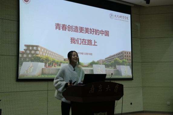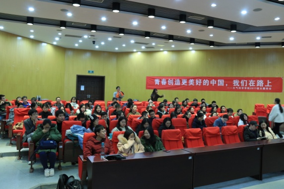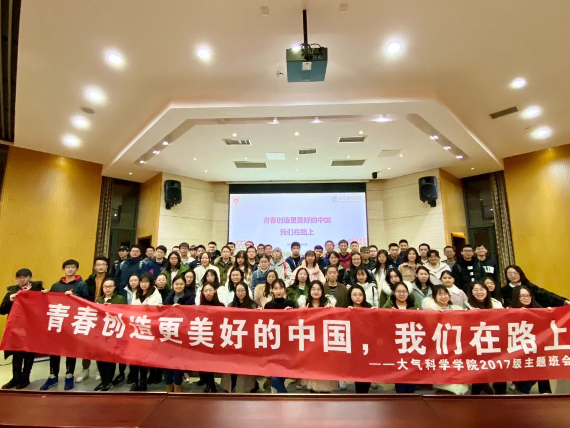 2019年12月18日下午4:30,太阳成集团tyc234cc2017级全体师生在大气公司D102开展了“青春创造更美好中国—我们在路上”主题班会。班会由高雨迪同学主持。