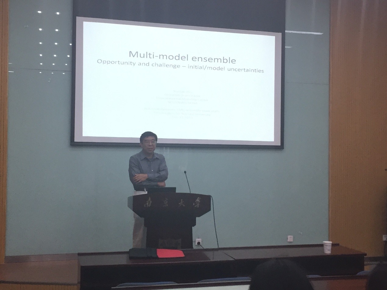 2015年10月21日上午,应公司袁慧玲教授的邀请,美国NOAA环境预报国家中心(NCEP)环境模拟中心(EMC)的集合预报组组长朱跃建老师在仙林校区大气科学楼为全院师生做了题为“Multi-model ensemble, Opportunity and challenge - initial/modeluncertainties”的学术报告。