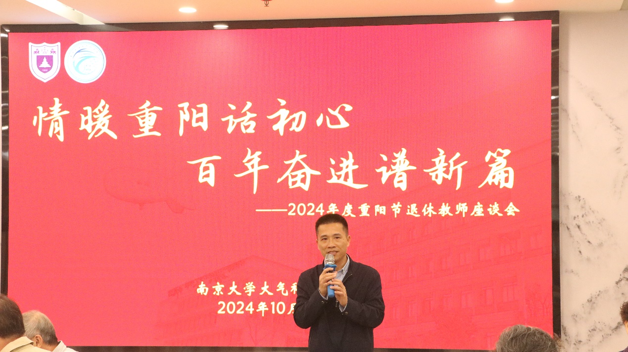 公司党委书记林仕尧向全体退休教师致以诚挚问候和美好祝福。他着重介绍了近年来公司事业发展所取得的进展和成绩,特别是在人才队伍建设、高水平科研、团队建设、国际化办学等方面的主要成效以及举办大气学科创立一百周年活动等情况,衷心感谢全体退休教师长期以来对公司的关心、支持、付出和奉献,希望退休老师们保重身体,继续关心和支持公司发展,祝愿大家幸福安康。