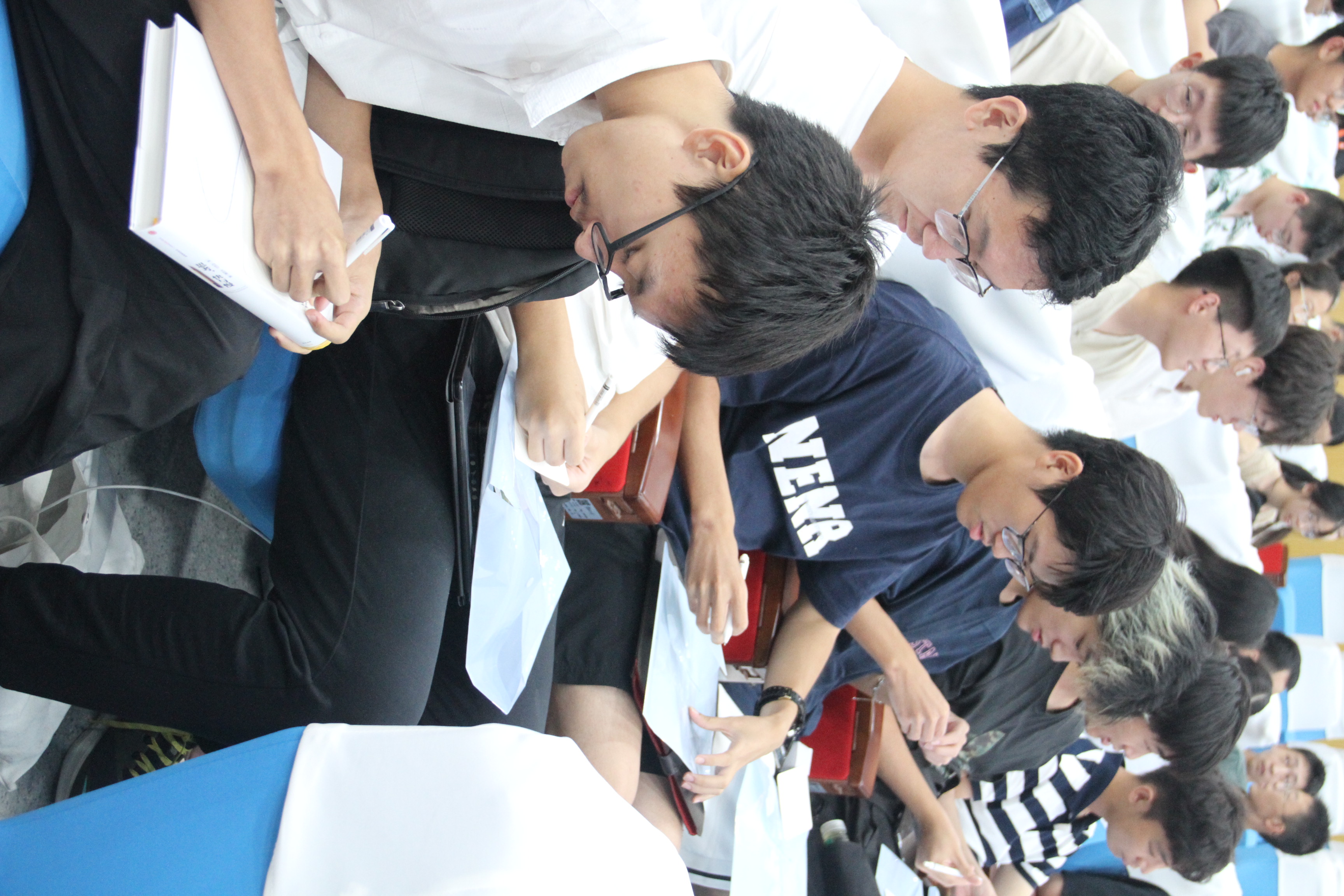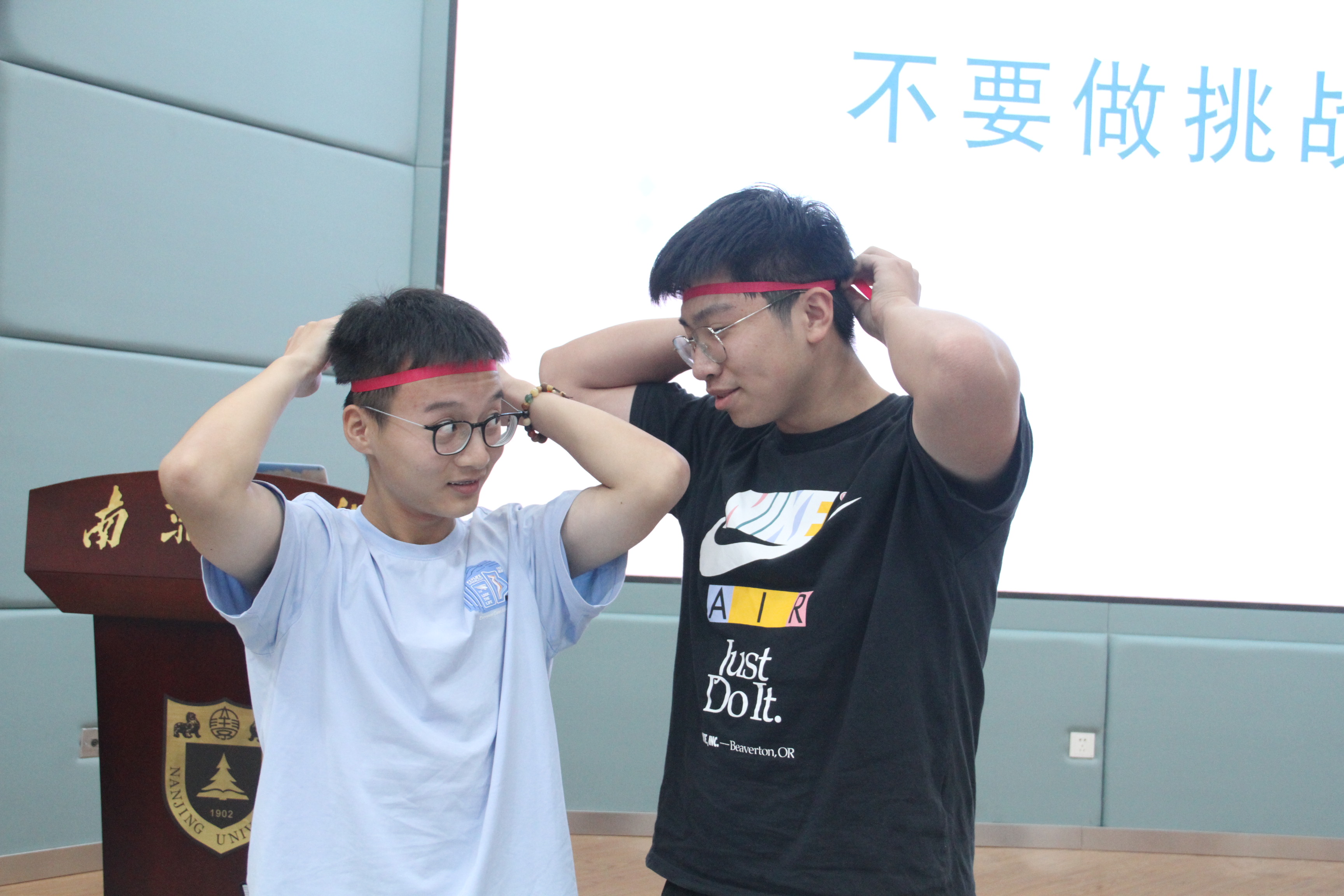 最后一个游戏便是大家熟悉的不要做挑战啦。同学们同样报以热情,纷纷用准备好的头巾绑住仅对自己不可见的“不要做任务”。游戏刚开始,便有几位同学“莫名其妙”的输掉了游戏,这惹来大家的阵阵笑声。随着游戏进行,“乌龙”事件愈演愈烈,同学们也是笑声不止,现场充满了快活的空气。