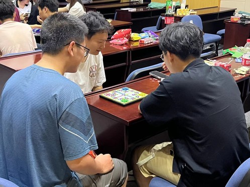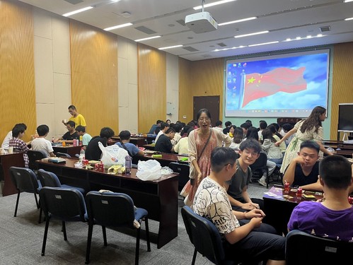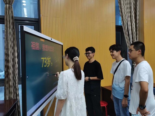 接下来,同学们围坐一圈,一边参与游戏放松身心,一边进行才艺展示;此外,部分留校老师也与员工亲切交谈并送上节日祝福,希望同学们锚定时代坐标,厚植家国情怀,积蓄奋勇搏击的青春力量,与伟大祖国同向同行。活动现场气氛轻松愉悦,师生交流其乐融融。