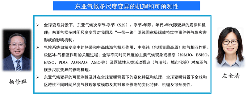 • | 东亚气候变异的可预测性及其在全球变暖背景下的变化特征和机理;全球变暖背景下全球和区域性不同时间尺度气候现象或模态及其对东亚影响的变化特征、机理及可预测性。 |